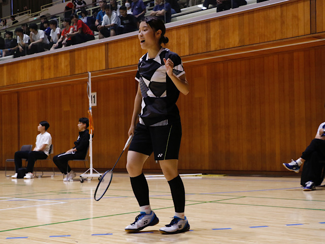 主将・梅田は、尾形と同じくシード権を獲得し2回戦からの参加となった。2回戦の相手は法大。「ただ目の前の1本に集中した」(梅田)。自在にショットを操り、浮いた球は鋭いスマッシュでコートへ返す。点差を着々と広げ、難なくこの試合を手中に収めた。続く3回戦では専大との対決。ここでも梅田の強みを発揮する。リズムを崩さず自身の攻撃スタイルを維持。「シャトルがよく飛ぶコートだったがそこでミスなく取り続けられたのがひとつの要因」(梅田)。隙を与えずストレートで勝利を収めた。