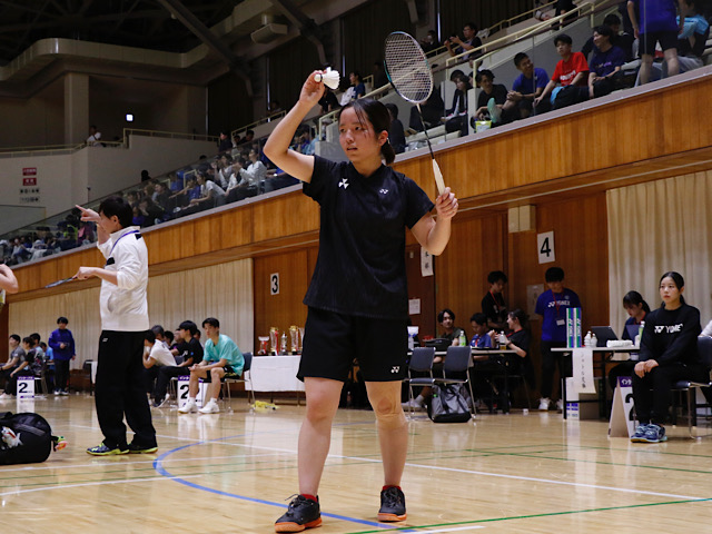 3回戦は筑波大の須崎と対決。第1ゲームは一進一退の展開となるが、尾形がわずかにリードを奪う。しかし、インターバル後に調子を上げてきた相手についていくことができない。連続得点を献上し、このゲームを落とした。続く第2ゲームも悪い流れを断ち切ることができない。序盤から点差を広げられ、苦しい展開に。懸命にシャトルを追うも、一枚上手だったのは相手。ここで敗退となった。