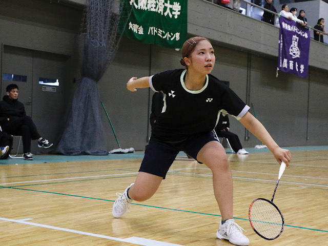 近松は立命大の実力者と対決。第1ゲームは5連続得点を奪われ、流れを渡す。追い上げを図るも巧みなプレーで振り切られた。後がない第2ゲーム。粘りを見せ、引き離されない。しかし、インターバル後に連続得点を許したまま調子が上がらない。健闘するも強豪に屈した。