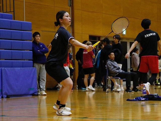 続く準々決勝は立命大と激突。第1ゲームは4回戦同様、追いかける展開となる。4点差で折り返すも、ここから反撃ののろしを上げた。正確なレシーブと、角度のついたスマッシュで得点を量産。最後は怒涛(どとう)の6連続得点で畳みかけ、このゲームをものにした。しかし、第2ゲームでは苦戦を強いられる。思うようにシャトルを返すことができず、次々とポイントを献上。6点に抑えられ、勝負はファイナルゲームにもつれ込んだ。互いの意地がぶつかり合い、一進一退の攻防が繰り広げられる。点差が開かない状況が続くも、抜け出したのは高本。マッチポイントを握り、勝利へ王手をかけた。しかし、相手も黙っていない。4点差を縮められ、瞬く間にデュースへ持ち込まれた。そのまま猛攻を止めることができず、敗北。試合を優位に進めていただけに悔いの残る結果となった。