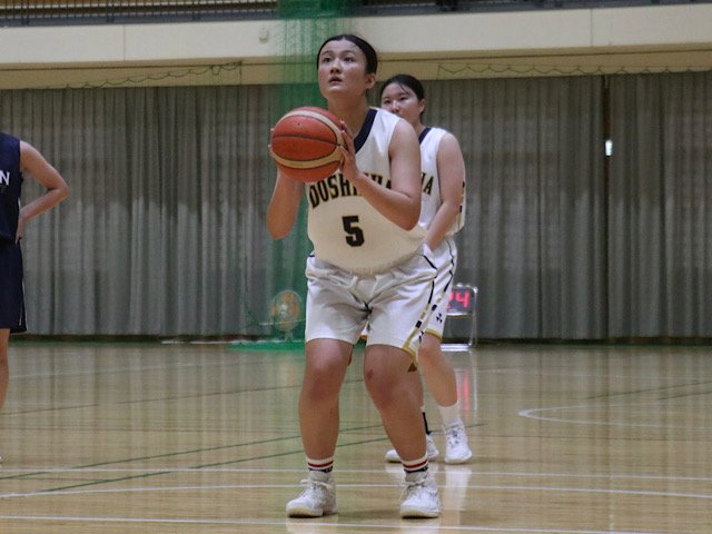 なんとしてもリードを守り抜きたい第4Q。両者疲れが見える中、勝ちに貪欲な姿勢から一進一退の攻防戦が繰り広げられる。3分、須合(同女3)から小島にわたり速攻を決めた。同志社のタイムアウトでチームで決めた形で攻めるが、ミスから反撃を受ける。シュートまでたどり着けると、同点に追い込まれた(58-58)。それでも同女は怯むことなく強気に責め続け、反則を誘う。4回のフリースローを獲得し、安定した決定率で1本も落とすことなく、得点を引き離した。
