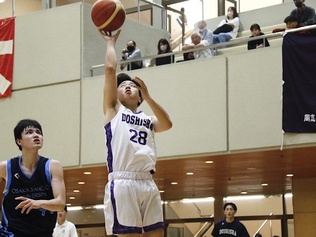大産大との接戦を制し、1回戦を突破した同志社。続く準々決勝は、外国人選手を擁する神戸医療未来大学と対戦する。「今日の課題を修正しながら、明日も勝ちにいきたい」(山藤)。全国への切符を手にするべく、明日も勝利をつかみとれ。(河場真世)