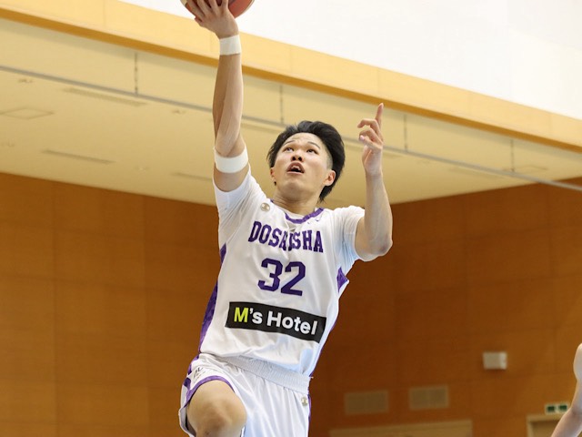 後半開始早々、秋田の渾身のスリーポイントが決まり、同志社が勢いを取り戻す。大澤のインサイドシュートや門川のリバウンドからの得点で、43-27と大きくリードを広げた。しかしその後、立命館のスリーポイントでじわじわと追い上げられる。尾上が落ち着いてフリースローを沈め、51-46とリードを守って最終Qを迎える。守備では、開始4分間相手を無得点に抑えるなど、集中力の高さが際立った。