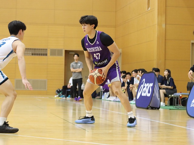 第3Q、同志社は序盤から積極的に攻めるも、なかなかシュートが決まらず苦しい時間が続く。相手に連続で3ポイントを許し、点差を詰められる展開となる。それでも柄澤がフリースローを沈め、続けてシュートを決めるなど意地を見せた。門川も果敢に攻め込み得点を重ね、安藤の3ポイントが決まると会場の空気が一気に変わる。第3Q終盤には門川のレイアップも決まり、食らいつく姿勢を見せた。第4Qは54-49で開始。田中から西村へのパスが通り、得点を重ねる。島倉の3ポイントで勢いを維持し、点差をキープする展開が続いた。門川は一度外したシュートを自らリカバーして決め、チームを鼓舞。終盤、柄澤の3ポイントやフリースローで再び流れを引き寄せたが、試合終了間際に相手の3ポイントがブザーと同時に決まり、惜しくも55-54で敗北した。