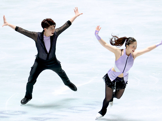 アイスダンスRDの4番滑走として登場したのは昨年の全日本王者であり、「うたまさ」の愛称で知られる吉田唄菜(木下アカデミー)・森田カップル。五輪代表最終選考を兼ねた今大会に、出場組の中で唯一の五輪参加資格を有する2人には、代表権獲得への大きな期待がかかる。プログラム『Stomp to My Beat』のビートに乗せたダンスで演技をスタートさせると、会場はすぐさま大きな手拍子に包まれた。持ち味のスピード感を存分に発揮した疾走感溢れるツイズルでは、最高評価のレベル4を獲得。流れるような一心同体のステップで、観客をさらに引きつけた。曲のスピードに合わせより加速した演技の中でも、正確なエッジワークを見せる。あうんの呼吸でローテーショナルリフトをこなし、終始キレのあるダンスで演技を貫き、68.78点をマーク。1位につき、王者としての貫禄を見せつけた。「今自分たちができる及第点の演技ができた」(森田)。演技を振り返り語った。