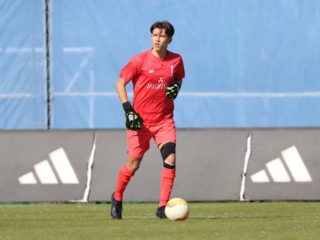 試合は同志社ボールでスタート。序盤は一進一退の攻防が続いた。しかし前半11分、ピンチが訪れる。相手ゴール付近でボールを奪われ、絶体絶命の状況に。しかし、守護神・祓川が左足を伸ばして好セーブを披露し、失点を防いだ。その後も拮抗(きっこう)した試合展開が続く。同39分には渡邉良から前田にボールがつながり、絶好の機会が訪れたものの、鋭いシュートはゴールポストに弾かれ得点にはつながらない。そのまま0-0で前半を折り返した。