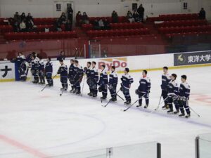 12月25日に、ダイドードリンコアイスアリーナで第98回日本学生氷上競技選手権大会が行われた。2戦目の相手は、中央大。終始相手に主導権を握られながらも、GK -