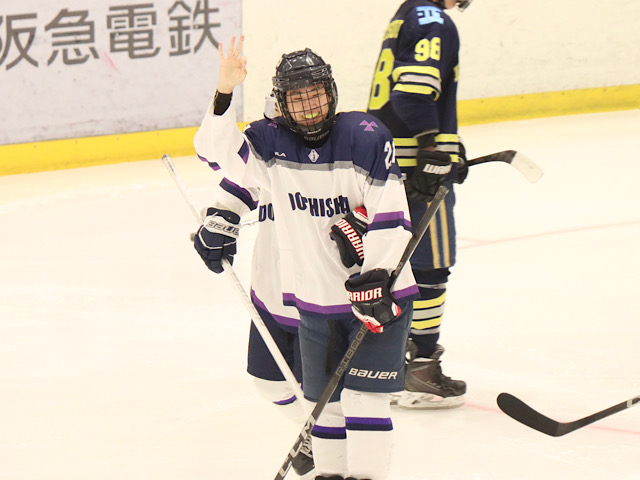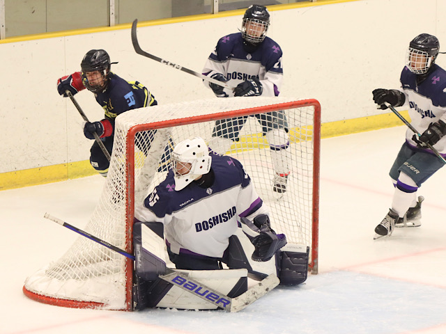 第1ピリオド開始早々、同志社は積極的に攻める。開始2分、八巻(法3)がシュートする。相手のGK(ゴールキーパー)に阻まれ、リバウンドしたパックを再びゴールに押し込むもゴールネットを揺らすことはできなかった。同5分、先制点を決めたのは辨野(法4)。阿部(商3)がゴール裏から出したパスを辨野が得点につなげた。その後も順調に点を獲得(3-0)。しかし、同8分、自陣に攻められ、不意の失点を許してしまう。続けて、その1分後、ゴール左側から打たれたシュートがGKの上部を通過しゴール。「コミュニケーション不足や、爪の甘さが課題としてみえた」(福井・法4)。悔しい失点ではあったが、4-2で第2ピリオドに進んだ。