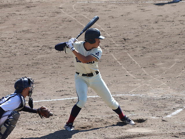 一方の打線は初回、レフト前ヒットで出塁した田中を着実に送り、2死三塁とする。続く4番栗原(商2)が自信の役割を果たし、打った打球はセンターへ。貴重な先制点を奪取した。