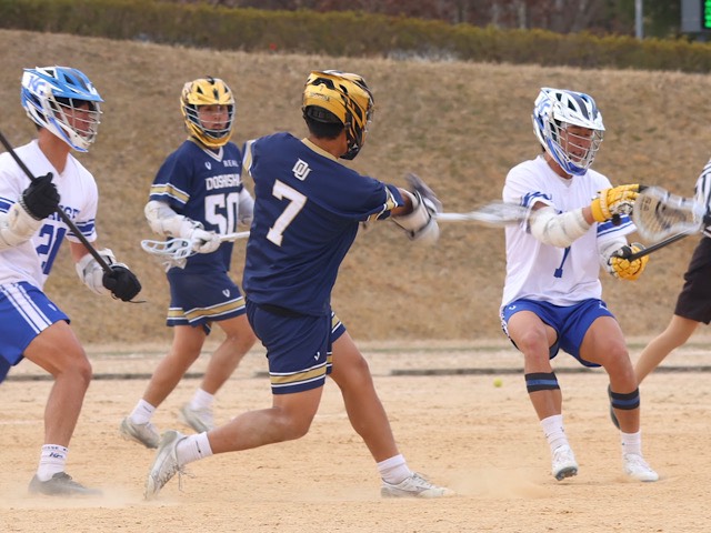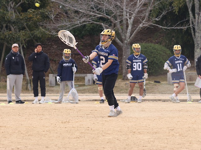 巻き返しを図った第2Q。内海、29番馬越がクロスを振り抜くなど攻勢を保つ同志社だが、得点には結びつかない。それでも開始5分、吉田がディフェンスを華麗にかわしてゴールを決め、試合を再び振り出しに戻した。しかし、「フェイスオフでクリアが上がらず、ポゼッション時間が少なくなり、オフェンス、ディフェンスともに勢いに乗れなかった」(桐山)と悔やむように、終盤で3連続失点。2―5と大きく突き放され、ハーフタイムを迎えた。