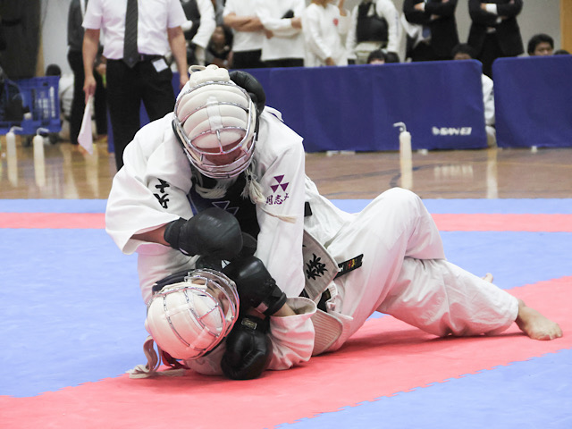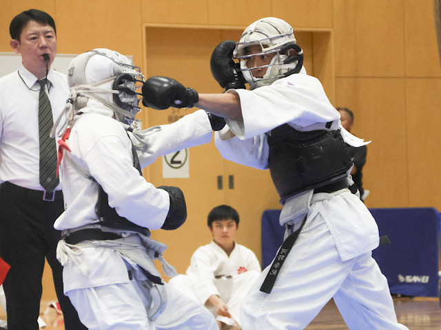 鎮西は初戦から本領を発揮した。相手を豪快に投げ倒すと、突きを決める。格上の実力者を次々に下し、順調にトーナメントを勝ち進んだ。「2、3回戦と良い内容で勝てた」(鎮西)。山場となったのは4回戦。明治大の強豪と相まみえた。慎重に様子をうかがうも、面蹴り、面突きを立て続けに決められる。奮闘するもここで無念の敗退となった。