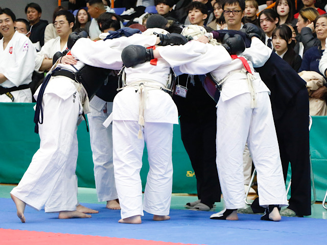 先鋒戦は山﨑が素早い攻撃を見せ、面突き2本で勝利。続く中堅戦では中川が胴突き、面突きを決め1-1で大将戦を迎えた。北岸と和田詩が互いに譲らない攻防を繰り広げ、一本が入らないまま引き分けに。勝敗は代表者戦に託されることとなる。Aチームの代表者は中野が、Bチームは中川が務めた。まず試合を動かしたのは中川。胴突きで先制に成功した。しかし、中野も面突きを決め拮抗した試合展開に。最後は中川が中野を押し倒し、胴突きを入れBチームに勝利をもたらした。