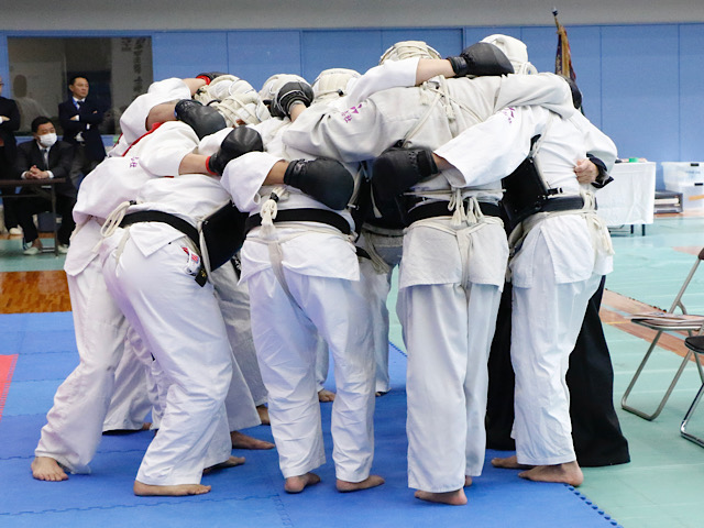 青学大との3回戦。先鋒の光武が胴突き、面突きを立て続けに決めると、次鋒の武重も相手を押し倒し、面突き二本を入れる。三峰の松尾は胴突きで一本を先取するも、面突き、胴突きを奪われ敗北。それでも鎮西が豪快な投げ技で二本を取ると、再びチームは勢いづく。河野、湊本、西村も相手に一本も与えることなく勝利を収める。6-1で準決勝進出を決めた。