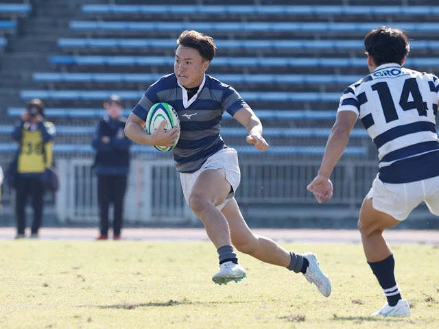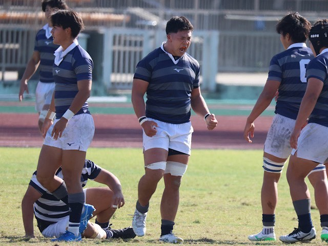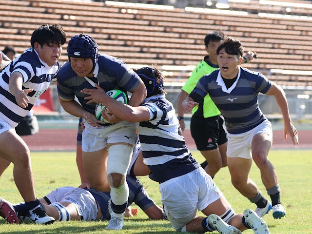 11月23日、たけびしスタジアム京都で2025ムロオ関西大学ラグビーAリーグの第6節対関大戦が行われた。清々しい晴天の中で開催された今試合。紺グレの勇姿を見るために、会場には多くの観客が訪れた。連勝を飾るべく果敢に挑むも、「関大のディフェンスが固かった」(森岡)と序盤から苦戦を強いられ、3-15で前半を折り返す。後半戦で奮起し3トライを奪ったが、20-22で敗北を喫した。「スコアしないといけないところで、することができなかった」(長島)。プレースキックの結果か勝敗に直結。勝利まであと1歩が届かず、選手たちは肩を落とした。