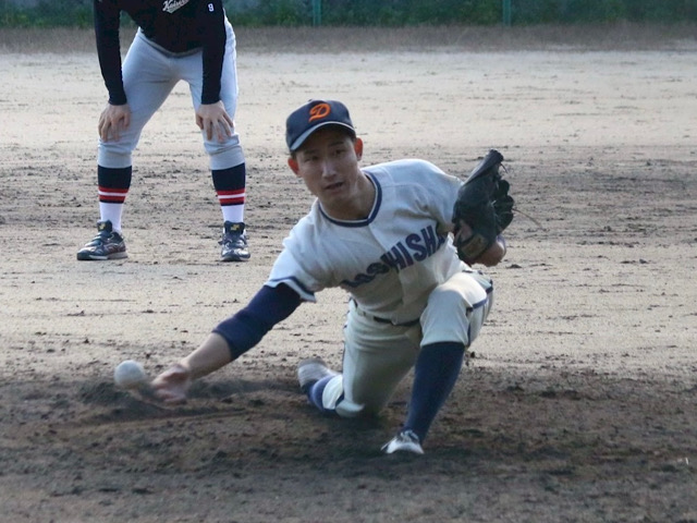 8回裏には浅野に代わり橋本(経3)がマウンドに上がった。先頭バッターをファーストゴロに打ち取るも、その後エラーと四球が重なる。2死一、二塁で迎えた打者にレフト前ヒットを放たれると、二塁ランナーが一気に本塁へ帰還。貴重な一点を献上した。