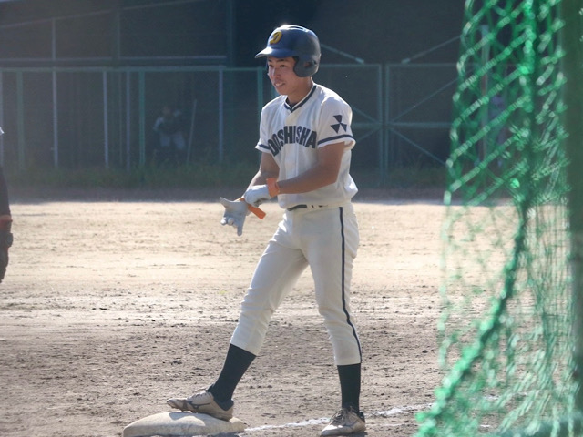 4回表、同志社にチャンスが訪れる。先頭の吉岡(スポ2)がヒットで出塁。今泉がセンターフライに倒れるも、青木(スポ)が四球を選ぶ。更に藤原(経2)がレフト前ヒットでつなぎ1死満塁の好機をつくった。しかし、続く天谷(法1)、長尾(理工2)が三振に倒れ先制点を挙げることができない。