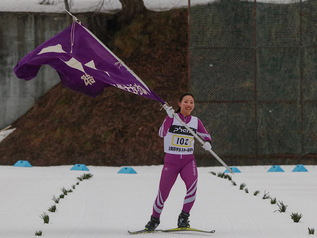 アルペンでの競技を終え、迎えた最終日。今のチームでは最後の競技となる3×5kmリレーが行われた。緊張感が高まる中、女子リレーがスタート。合図と共に第一走者である鈴木が勢いよく飛び出した。順調にコースを滑り、大きなリードをつくって菊池にバトンをつなぐ。優位な状況でバトンを受け継いだ菊池だが、気を緩めることなく圧倒的な実力を発揮。15:11.9と全走者中1位の走りを見せ、アンカーの近藤にバトンを渡した。ラストランとなる近藤も爽快感ある滑りで、危なげなくコースを回り会場へ戻る。最後の直線で二宮から部旗が渡され、大きく振りながら1位でゴール。コース脇で待ち構えていた部員たちに迎えられ、互いに抱き合って喜びを分かち合った。全関最後の男子リレーは金村、山田、二宮に加え、アルペンの選手である明石が参加し、4人で試合に挑んだ。スタートを切った明石は、普段とは異なる競技に苦戦しながらも、粘り強い滑りで食らいつく。最後まで諦めることなく走り切り、金村へバトンをつないだ。金村も安定した滑りを見せ、先頭との差を縮める。気力を絞りながらコースを回り、山田に望みを託した。バトンを受け継いだ山田は華麗な滑りを見せ、レース半ば逆転に成功。アンカーの二宮にバトンを渡した。二宮はさらにリードを広げ、1位を維持したまま最後まで滑り切る。応援に駆け付けたアルペンの選手やOB・OGの歓声が響く中、首位でゴールした。