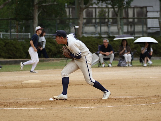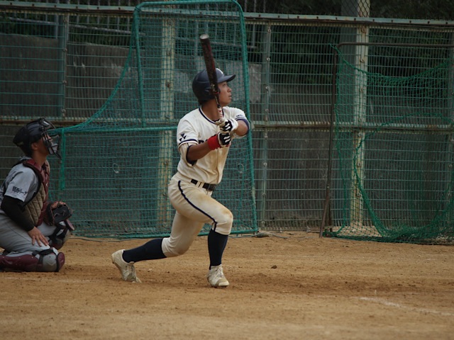 初回、1番打者の藤井(スポ3)が四球を選び出塁すると、上野(スポ3)の鋭い二塁方向への打球が相手のエラーを誘い、先制点を獲得した。
