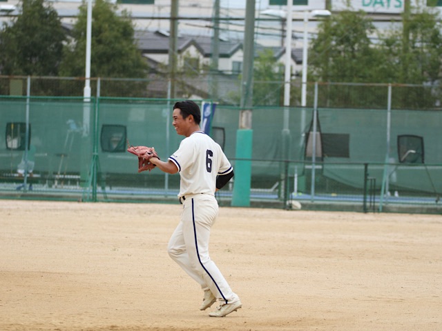 6回裏、膠着していた試合は再び動き出す。先頭打者の高橋が単打で出塁し、盗塁を成功させる。無死二塁のチャンスを演出すると、この好機で打席に立った西(商2)が右方向への犠打を放ち、勝ち越しに成功した。その後、チャンスを作るも、この回では追加点の獲得に至らなかった。
