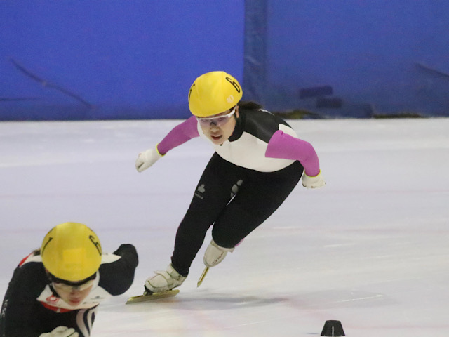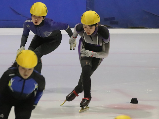 同志社から計6名がエントリーした今大会。女子では主将・杉本(スポ3)が選手権女子500㍍、1000㍍、1500㍍に、益田(政策3)が二部女子500㍍、1000㍍、1500㍍に出場した。「変に緊張せずに臨めたと思う」(杉本)。春からの鍛錬が試された中、杉本は昨季残した自己記録に並ぶベストタイムを記録。「初戦だったので不安だったが、いいスタートを切れた」(杉本)と自身の滑りを振り返った。