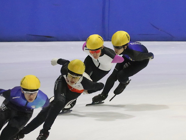 一方の男子ではナ(スポ4)、大久保(スポ4)、野口(社4)、佐野(文4)の4名が選手権男子500㍍、1000㍍、1500㍍に出場。全員がラストシーズンを迎えた今季の初滑走でもあり、「去年よりみんながやる気を出している」(ナ)と真剣な面持ちで今大会を迎えた。いずれの選手も準々決勝で敗退となり入賞には届かなかったが、ナは1000㍍、1500㍍で自己ベストを更新。「正直満足はしていないが良かったとは思う」(ナ)と自身の滑りについて語り、次なる大会に向けて闘志を燃やした。