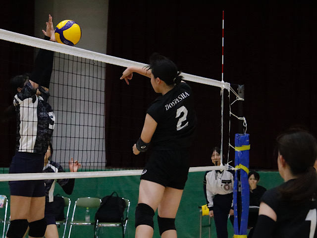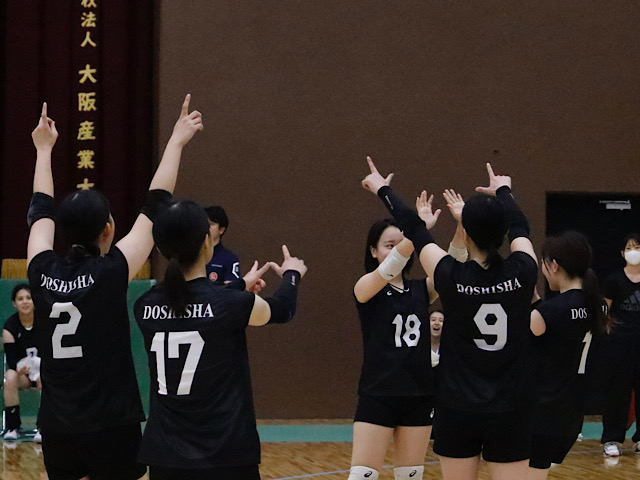 主導権を奪い返したい第3セット。陶原のアタックで先制点を奪い、順調な立ち上がりを見せる同志社。陶原と#18岩口(社1)が相手のどんなフェイントやプッシュにも素早く反応し、第2セットの反省を生かしたプレーがチームに流れを引き戻した。八木のレフトからのアタックや岡本と岡田の鋭い速攻で得点を重ね、25-17で第3セットを獲得した。