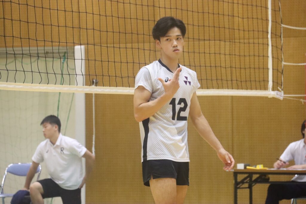 第1セット走り出したのは立命大。序盤でブレイクポイントを先制すると、一気に主導権を掌握する(2-4)。池田(商1)や小池(法4)のスパイクで追い上げを試みるも、今年の春季リーグ戦で3位という戦績を残した立命大の背中はそう簡単にはつかめない。7-8の場面から、立て続けにレシーブのも誰が目立ち4連続得点を献上(8-11)。「相手ミドルがあまり高くないので攻めの姿勢で戦った」(小田・スポ2)。攻撃型セッターの小田が、森川祐や伊藤(心理3)のMBを起用し試合を展開。しかし、ワンタッチから切り返されブレイクを許す場面が続き中盤戦には最大10点差のビハインドを抱える。「雰囲気を作りきれていなかった」(森川祐)。完全に勝機をつかめずコート内に暗雲が漂う中、小田が持ち前のツーアタックで応戦。「自分自身の攻めのスタイルを貫いた」(小田)。﨑山(商2)が中央に切り込み強烈なスパイクを決めるなど死力を尽くしたが、立命大の安定した守備網を崩せず18-25で第一セットを先取された。