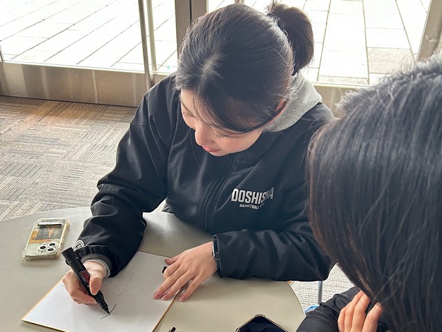 加藤 大切にしたい言葉は「楽」です。私たち女子バスケットボール部は楽しんでやるってことにすごく注力していて、練習中でも笑いが絶えない時があります。ただ、その中でも学生主体となってやっているので、お互いに指導し合うこともあるけれど、基本は楽しくやるっていうので「楽しんで勝つ」っていうことをみんなで意識してやっています。この目標を掲げて2部昇格できたらいいなって思っています。